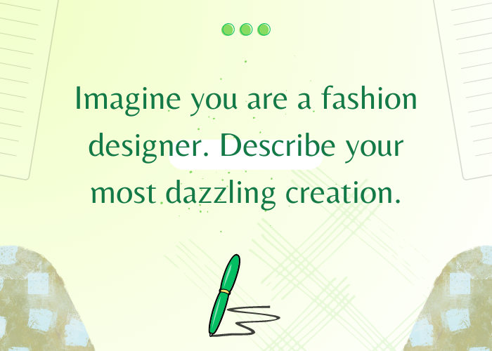 35. Imagine you are a fashion designer. Describe your most dazzling creation.