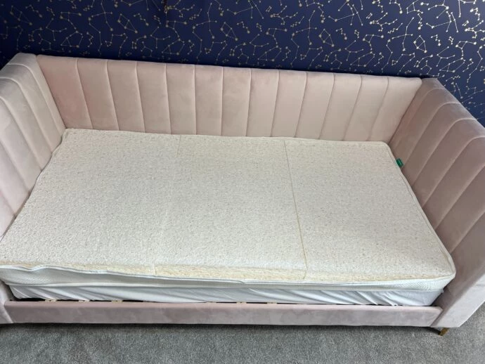 We went on the hunt to find mattresses that offer optimal comfort, safety, and support to try out. Among the myriad of options available in the market, the Newton Twin Mattress stood out as a superior choice for its breathability, proper firm support for growing bones, and the fact that it is 100% washable (trust me you’re going to want this during potty training)!